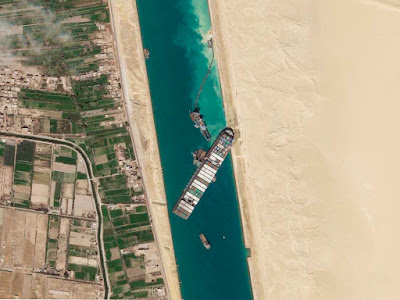 Suez Canal is a long narrow and single lane canal. I propose an extension of the canal using autonomous robots. The robots will be all electric and their batteries will be charged from the wind farm build on the banks of the canal. The enlarged canal will be separated with floating walls to make it dual lane. The robot based construction will allow 7/24 work with minimum number of workers required. No need to supply fuel, water and food. No need to construct temporary housing for the workers. The construction rate can be increased gradually by increasing the number of robots and wind turbines. Once the canal is finished the wind turbines would power the cities nearby.