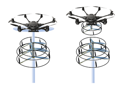 The stacked design allows more wind to be captured from a single tower. Decreases the weight and dimension of each section to be air lifted by a high-power drone.